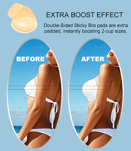 Double-Sided Sticky Bra pads are extra padded,instantly boosting 2-cup sizes.