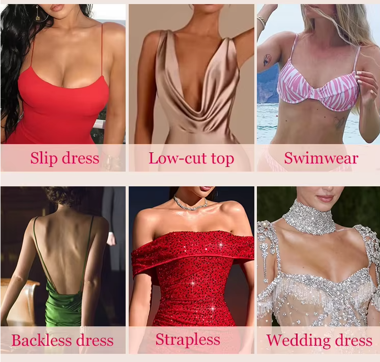 Usage Scenarios: | Suitable for deep V-neck, backless, wedding dresses, backless or evening gowns |