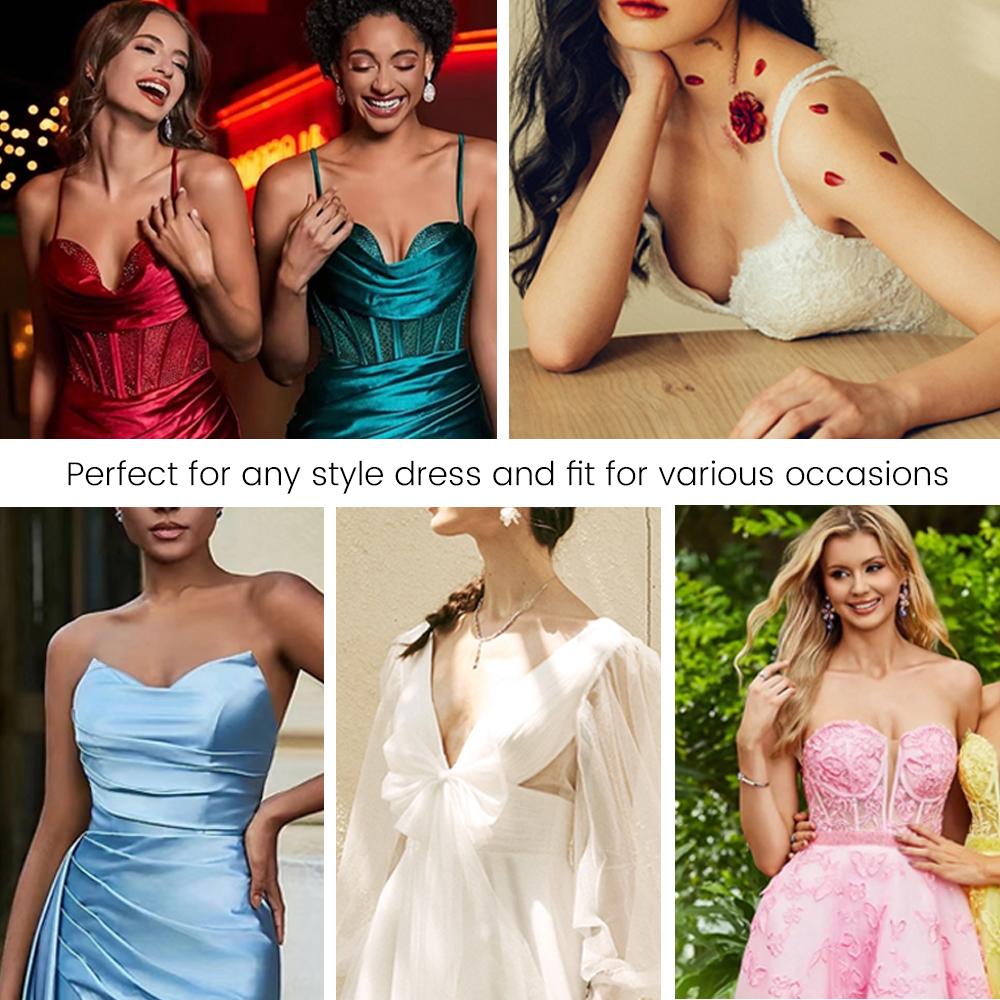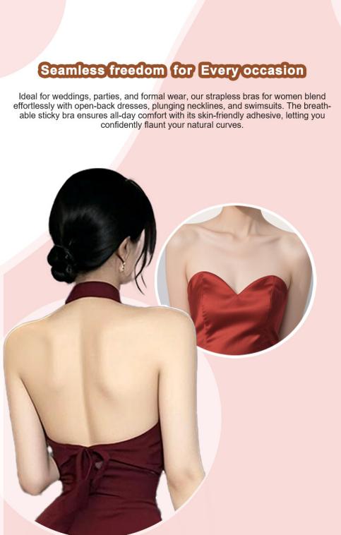 Ideal for weddings,parties,and formal wear,our strapless bras for women blend effortlessly with open back dresses,plunging necklines,and swimsuits.The breathable sticky bra ensures all day comfort with its skin friendly adhesive,letting you confidently flaunt your natural curves.